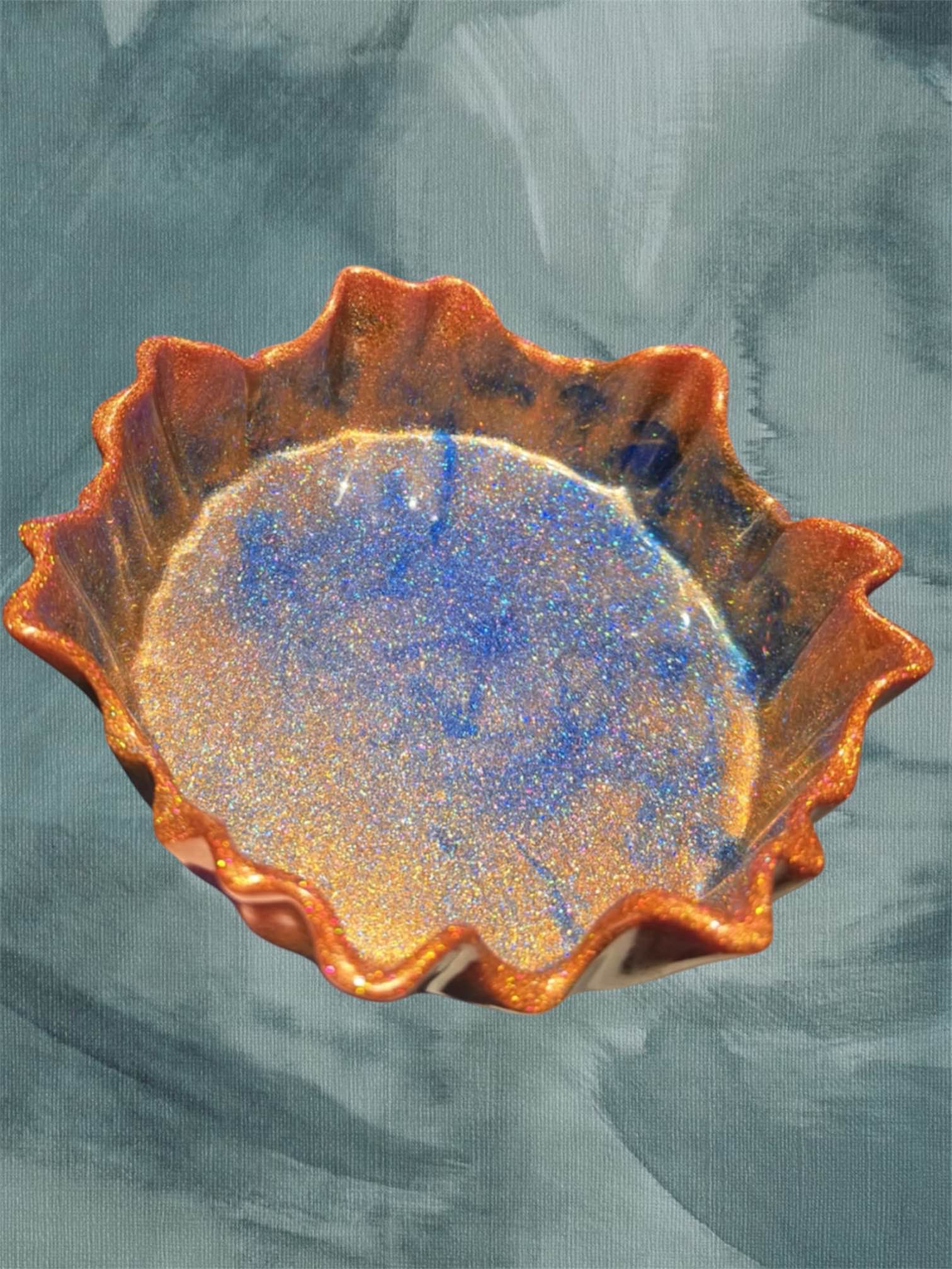 Bring a touch of elegance and art into your kitchen or dining room with this handcrafted resin fruit bowl. Its unique, organic design, paired with a stunning blend of vibrant colors and floral-like textures, makes it not just a functional piece but a work of art. Perfect for holding fruits or as a decorative centerpiece on your table, this bowl adds a sense of sophistication to any space.